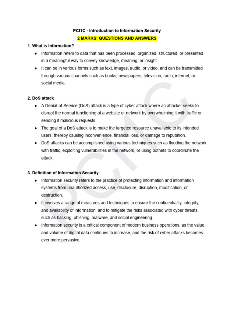 PCI1C: Info Security Q&A Guide