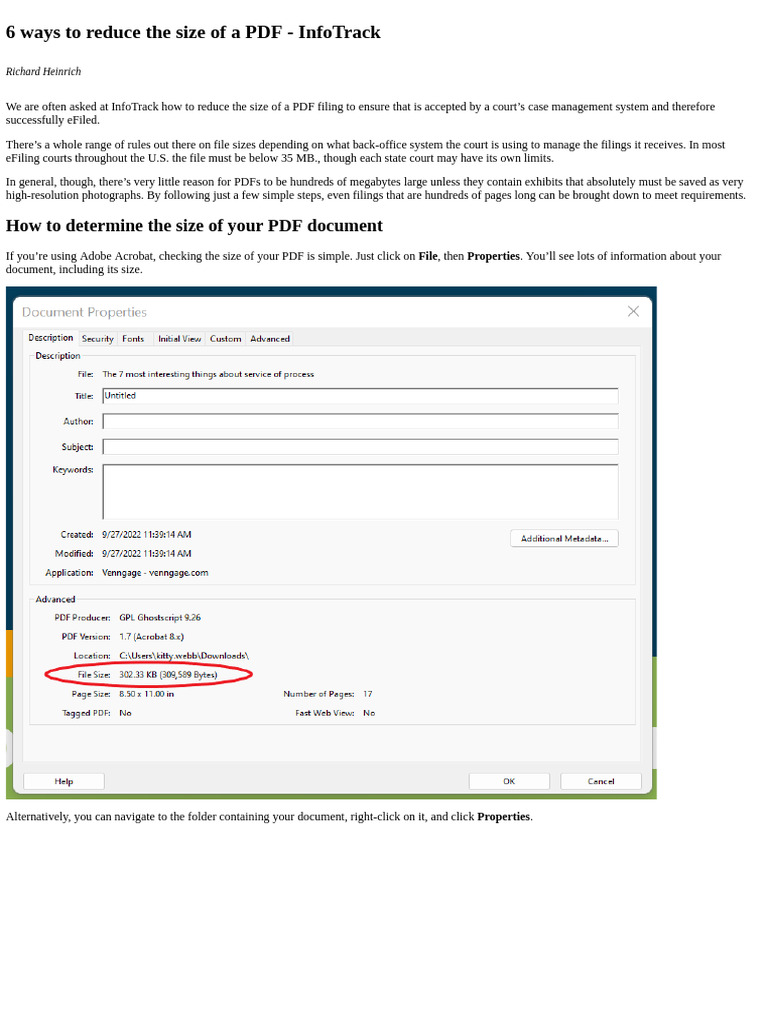 We are often asked at InfoTrack how to reduce the size of a PDF filing to ensure that is accepted by a court’s case management system and therefore