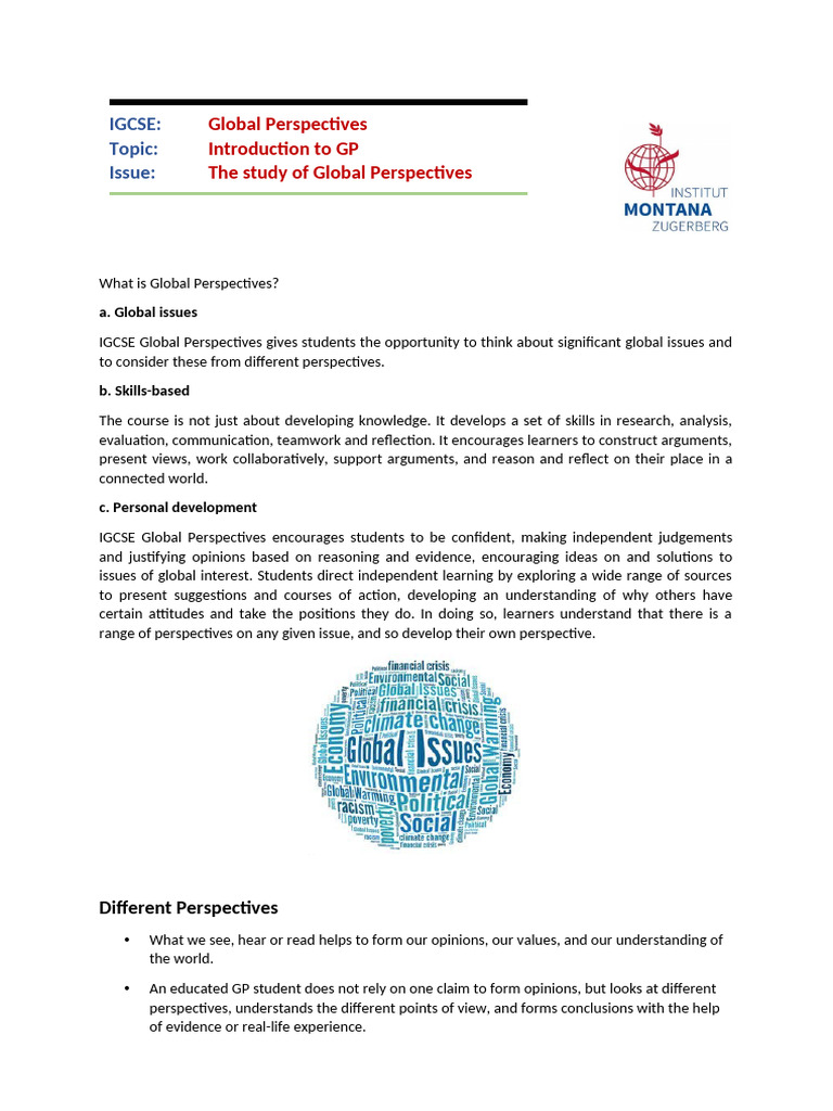 IGCSE Global Perspectives gives students the opportunity to think about significant global issues and