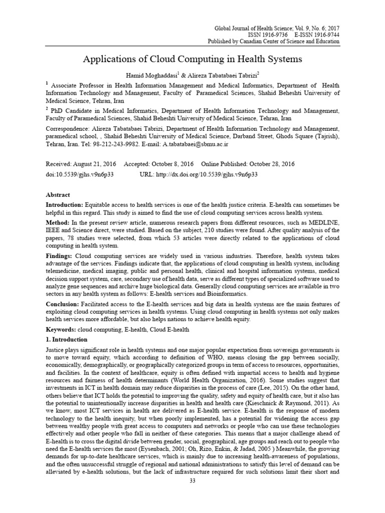 Obviously, the applications of cloud computing in health systems are not limited to the examples which were