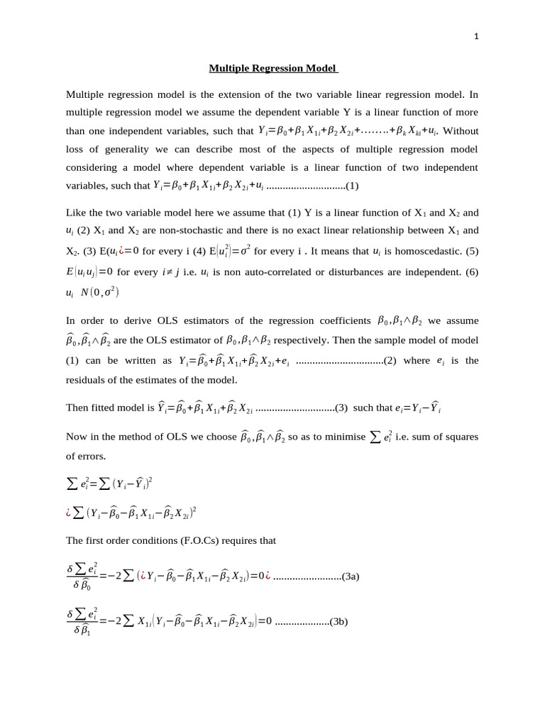 than one independent variables, such that Y i=β 0 + β 1 X 1 i+ β 2 X 2 i +… … ..+ β k X ki +ui . Without