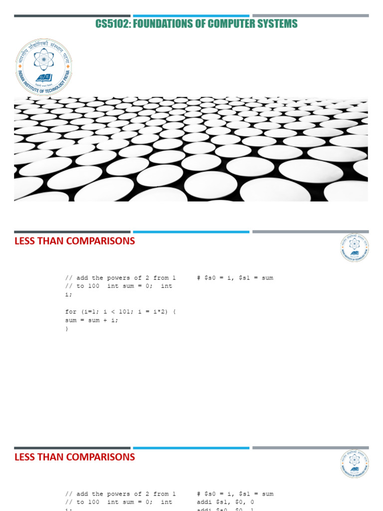 for (i=1; i < 101; i = i*2) { loop: slt $t1, $s0, $t0