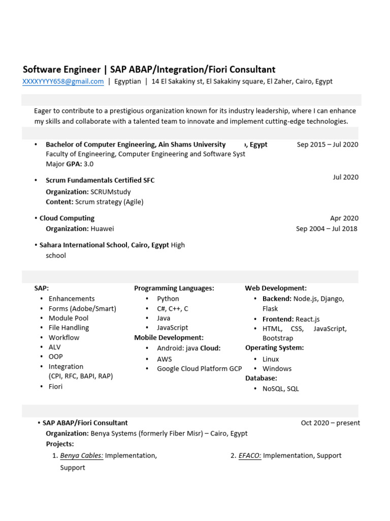 • SAP ABAP/Fiori Consultant Oct 2020 – present