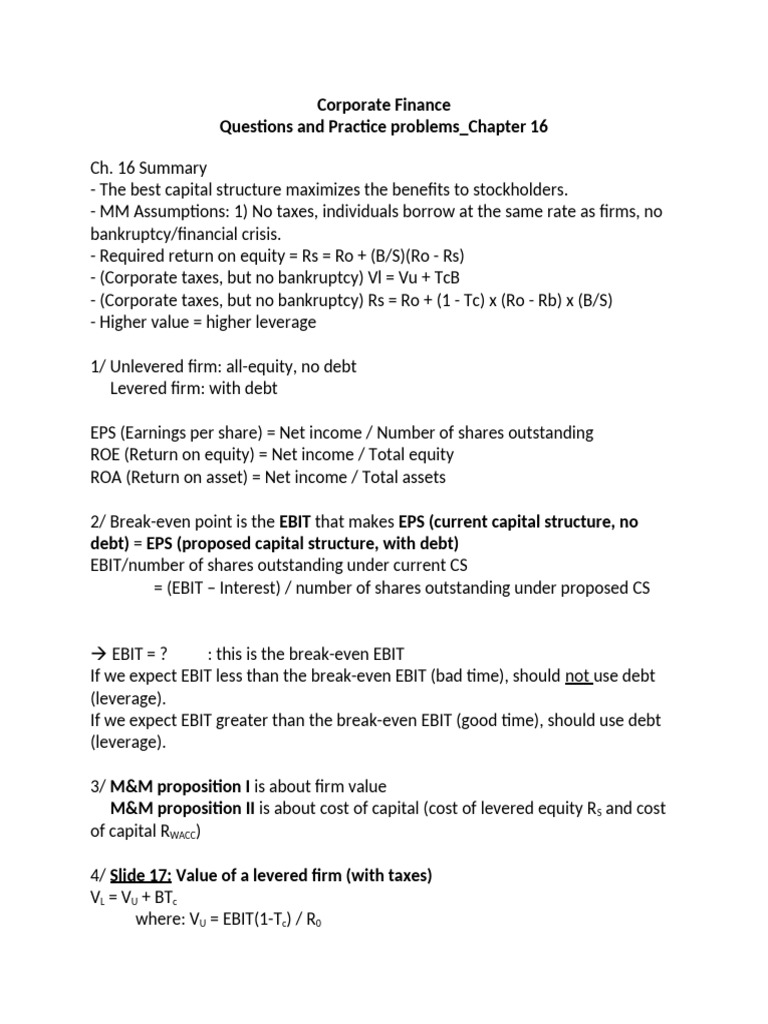 Link key các bài dạng tương tự: https://quizlet.com/898430769/chapter-16-capital-structure-