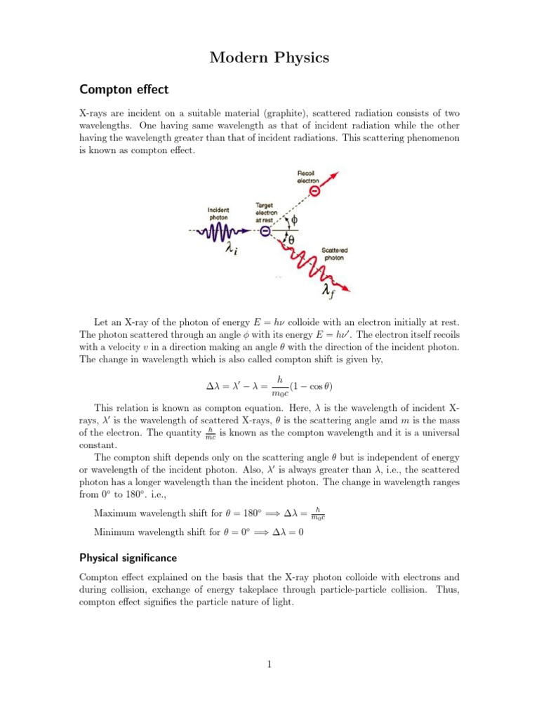 or wavelength of the incident photon. Also, λ0 is always greater than λ, i.e., the scattered