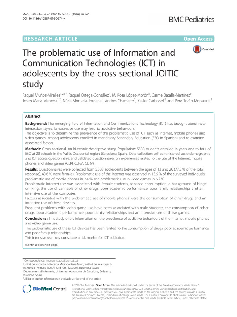 The objective is to determine the prevalence of the problematic use of ICT such as Internet, mobile phones and