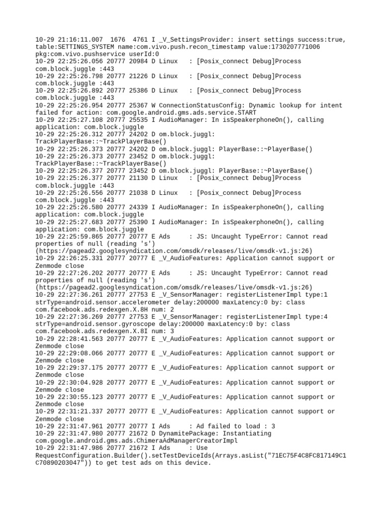 10-29 22:31:52.164 20777 20777 D _V_VivoStats: noteWhich, what = 49, arg1 = -1,