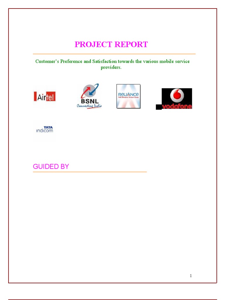 STUDY OF CUSTOMERS PREFERENCE AND SATISFACTION TOWARDS VARIOUS MOBILE SERVICE PROVIDERS
