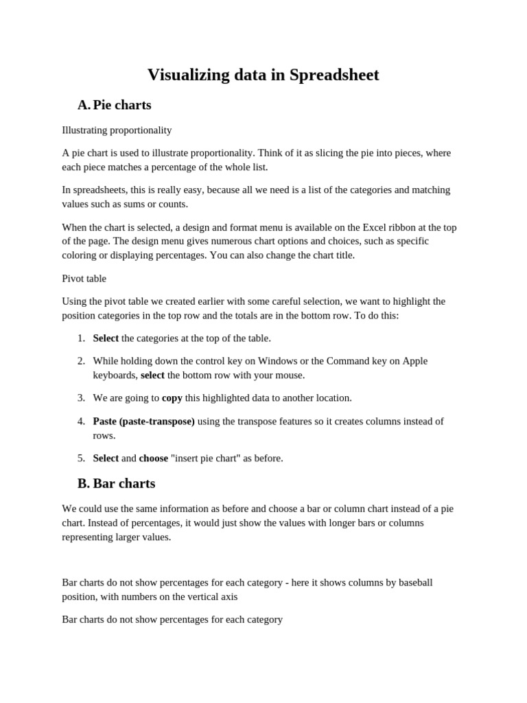 Bar charts do not show percentages for each category - here it shows columns by baseball