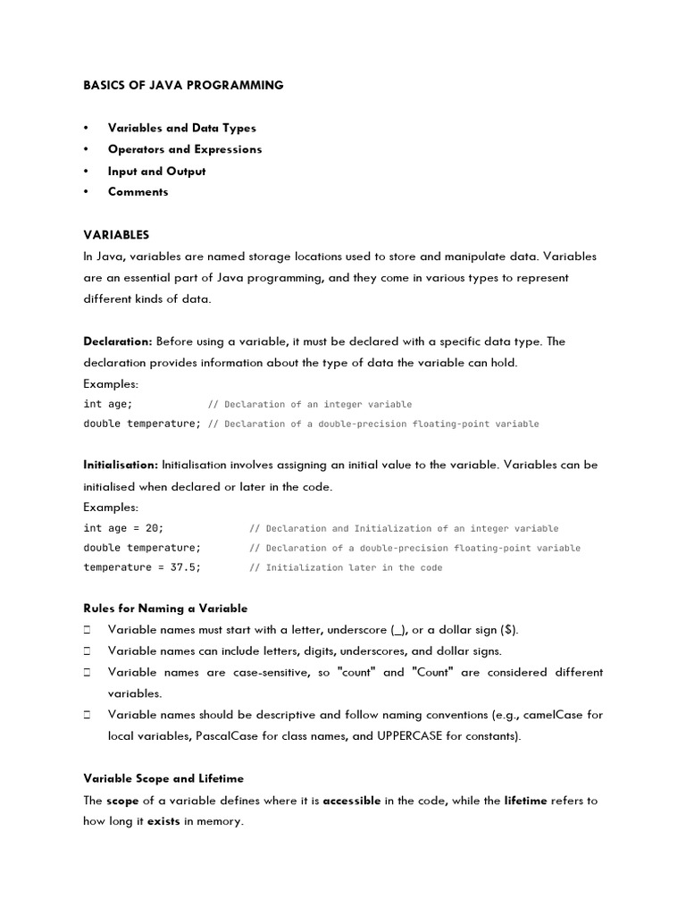 In Java, variables are named storage locations used to store and manipulate data. Variables