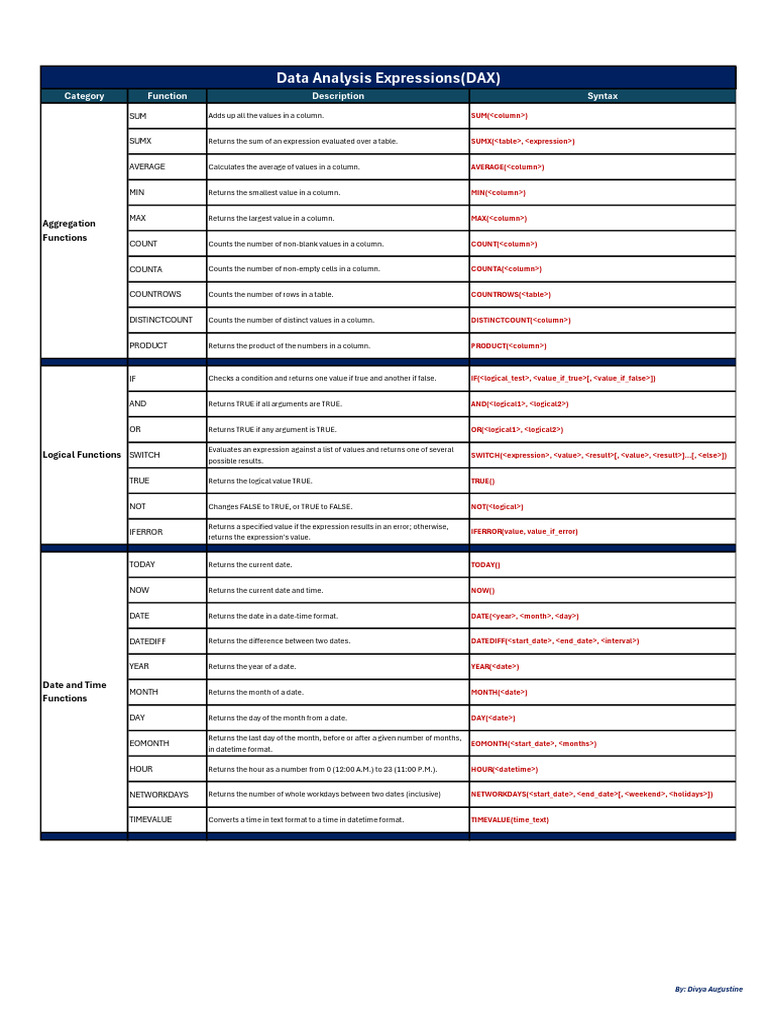 Functions DIVIDE Performs division and returns alternate result or BLANK() on division by 0 DIVIDE(<numerator>, <denominator> [,<alternateresult>])
