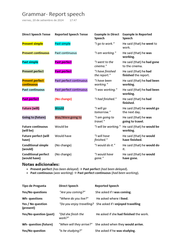 • La regla de retroceso de tiempos (backshifting) se aplica cuando el reporting verb está en