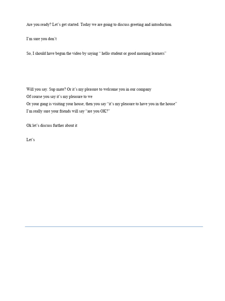 Are you ready? Let’s get started. Today we are going to discuss greeting and introduction.