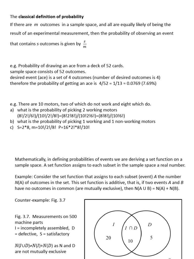N(A) of outcomes in the set. This set function is additive, that is, if two events A and B