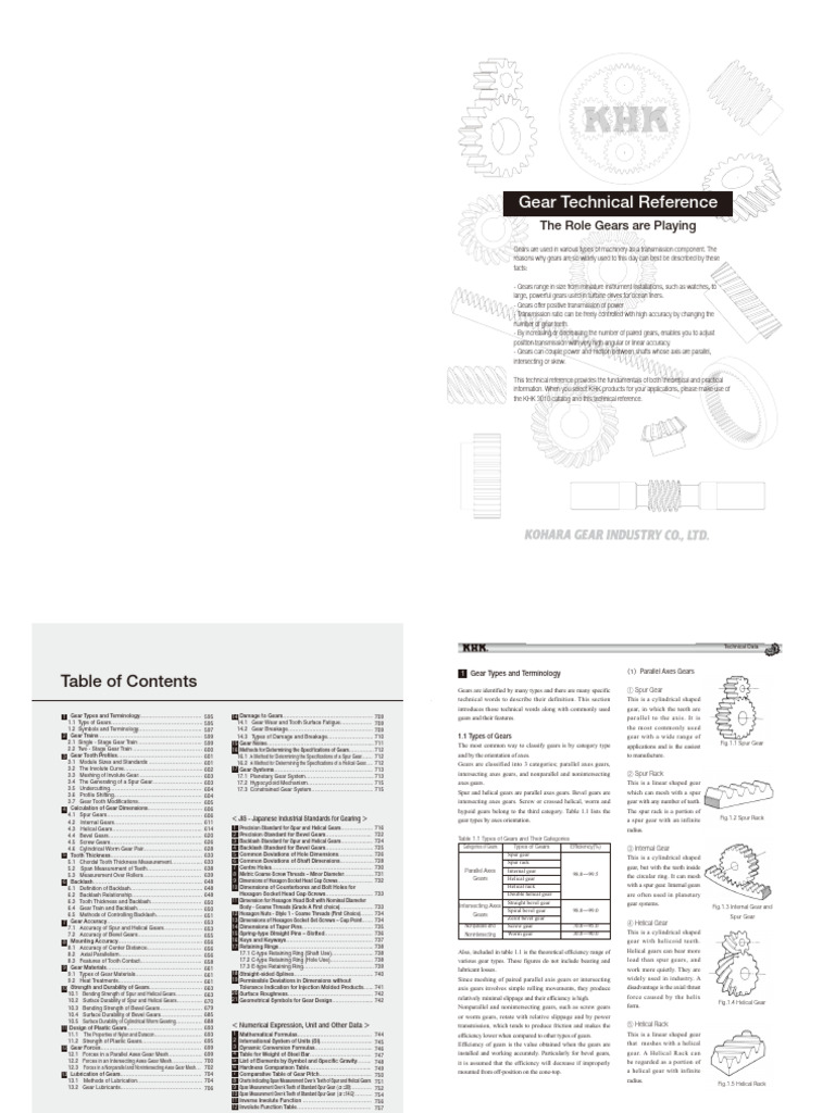 10 Strength and Durability of Gears………………………… 663 Tolerance Indication for Injection Molded Products…... 741 axis gears involves simple rolling movements, they produce disadvantage is the axial thrust