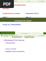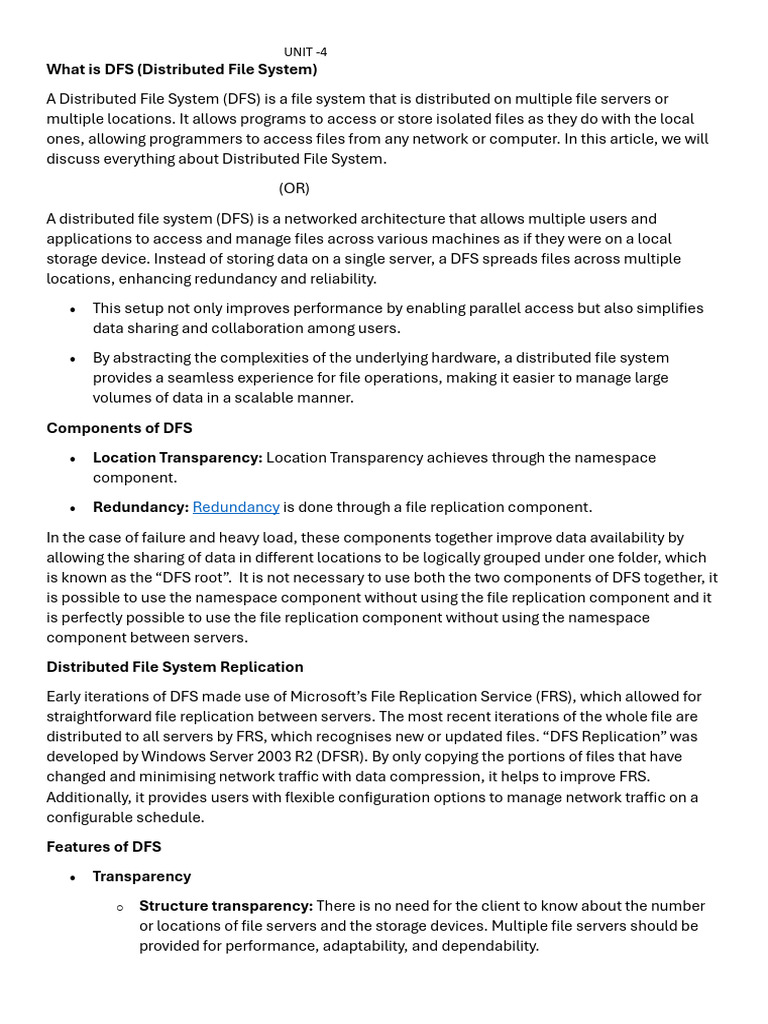 A Distributed File System (DFS) is a file system that is distributed on multiple file servers or