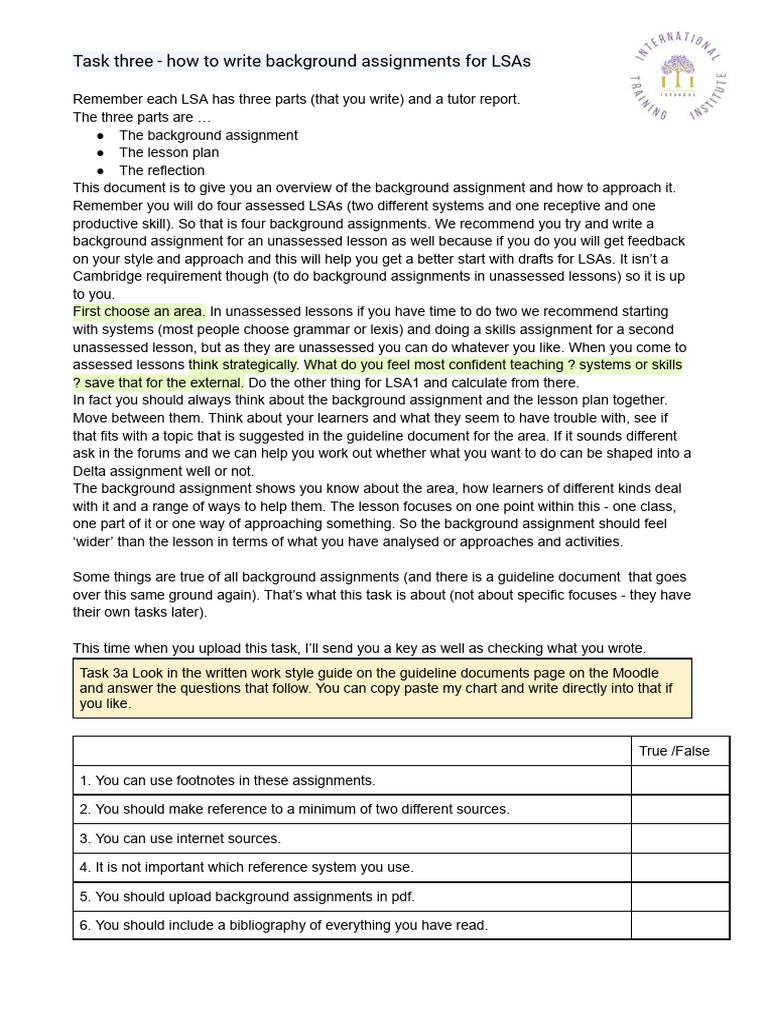 Task three - how to write background assignments for LSAs