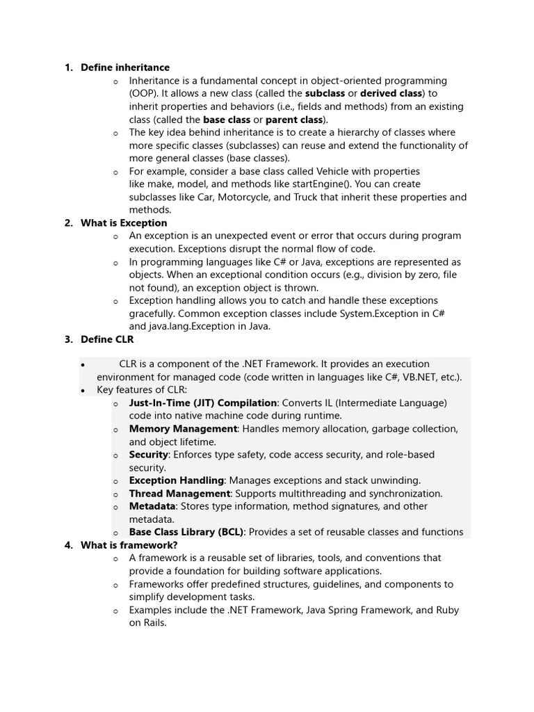 o Base Class Library (BCL): Provides a set of reusable classes and functions