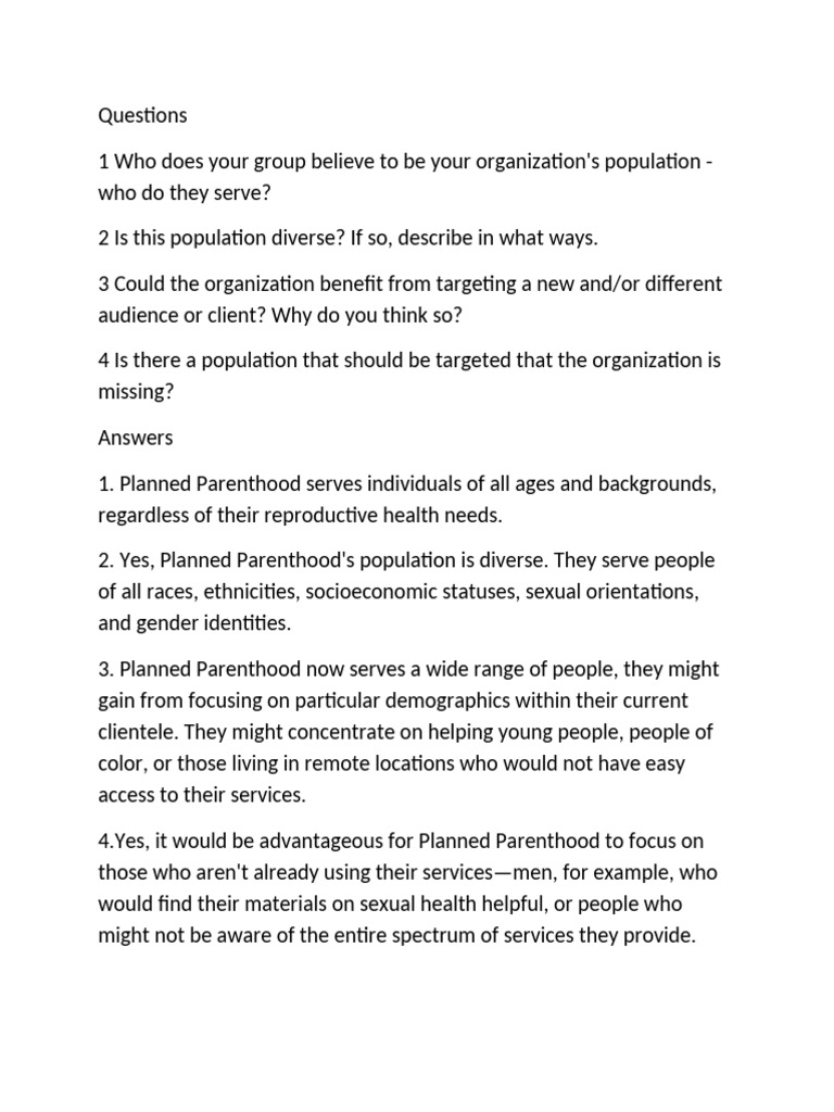 2. Yes, Planned Parenthood's population is diverse. They serve people