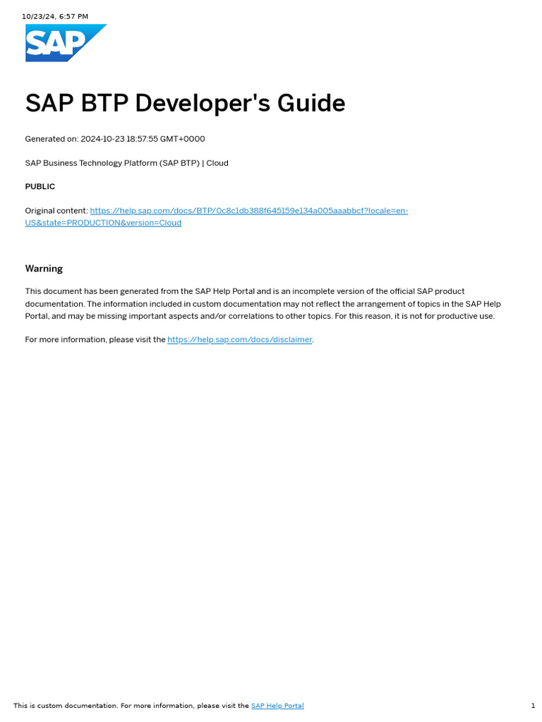 This document has been generated from the SAP Help Portal and is an incomplete version of the official SAP product