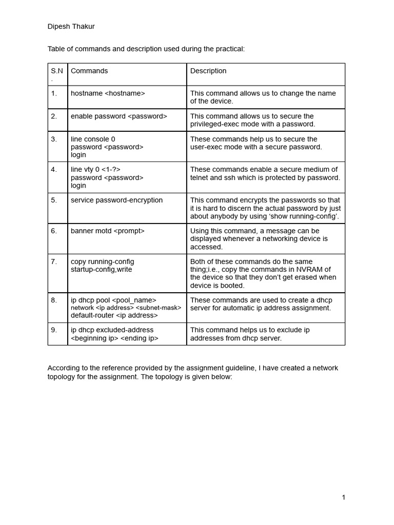 1. hostname <hostname> This command allows us to change the name