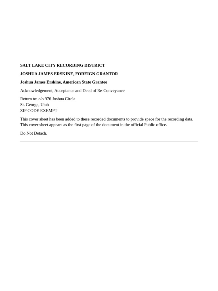 Name: Joshua James Erskine, to the land and soil of Utah state, together with all derivative names,