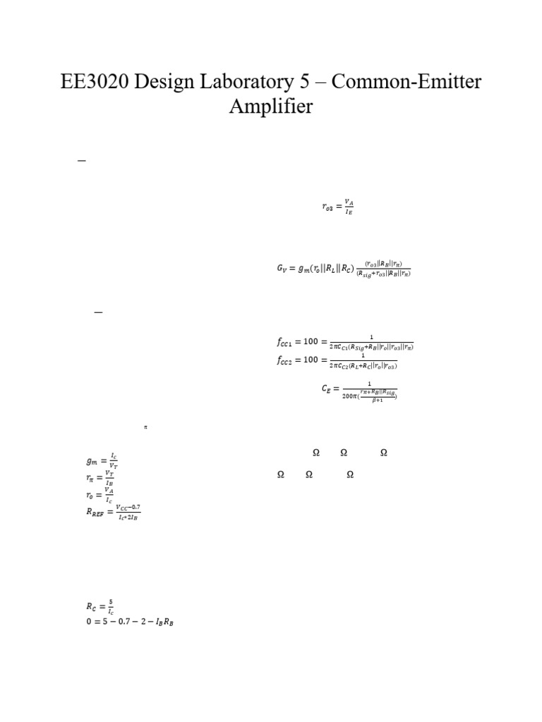 current, common-emitter amplifier. calculated values and an assumption that the frequency was 100