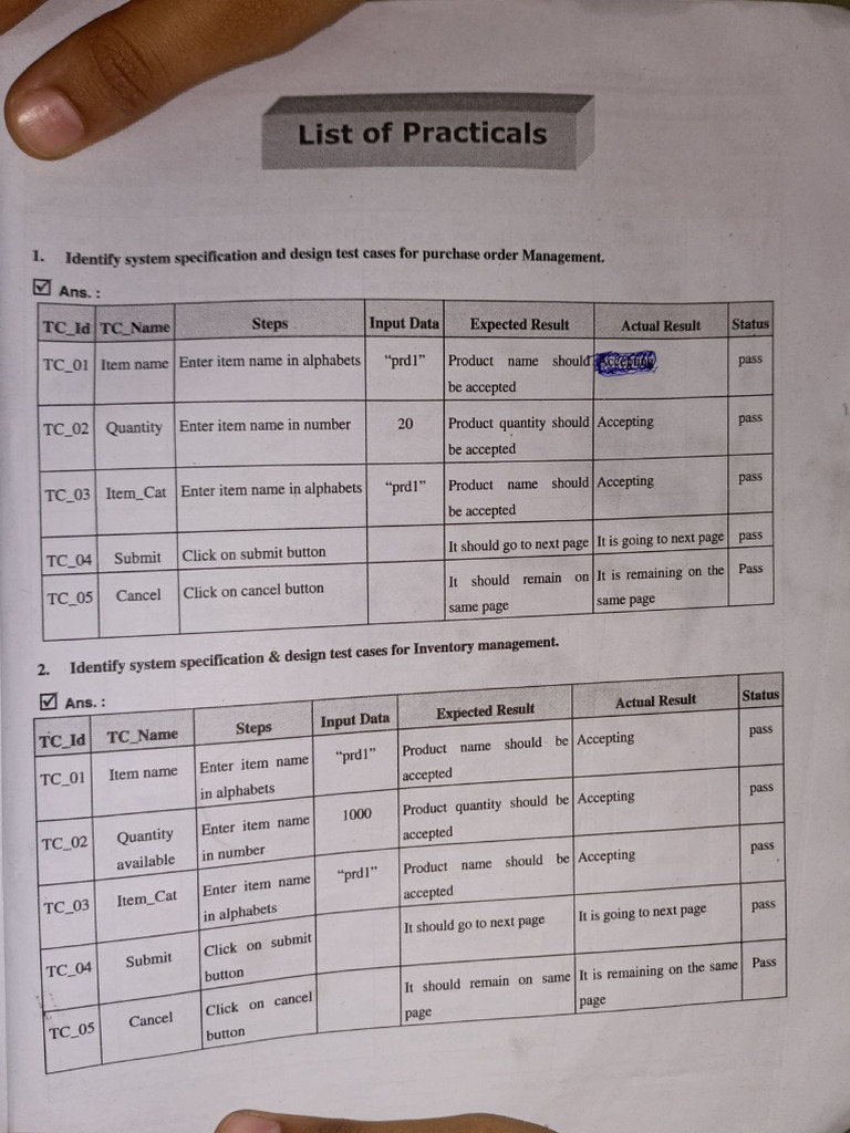 TC 01 Item name Enter item name in alphabets "prd1" Product name should d it pass
