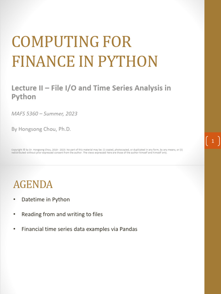 Copyright © by Dr. Hongsong Chou, 2019 - 2023. No part of this material may be: (i) copied, photocopied, or duplicated in any form, by any means, or (ii)