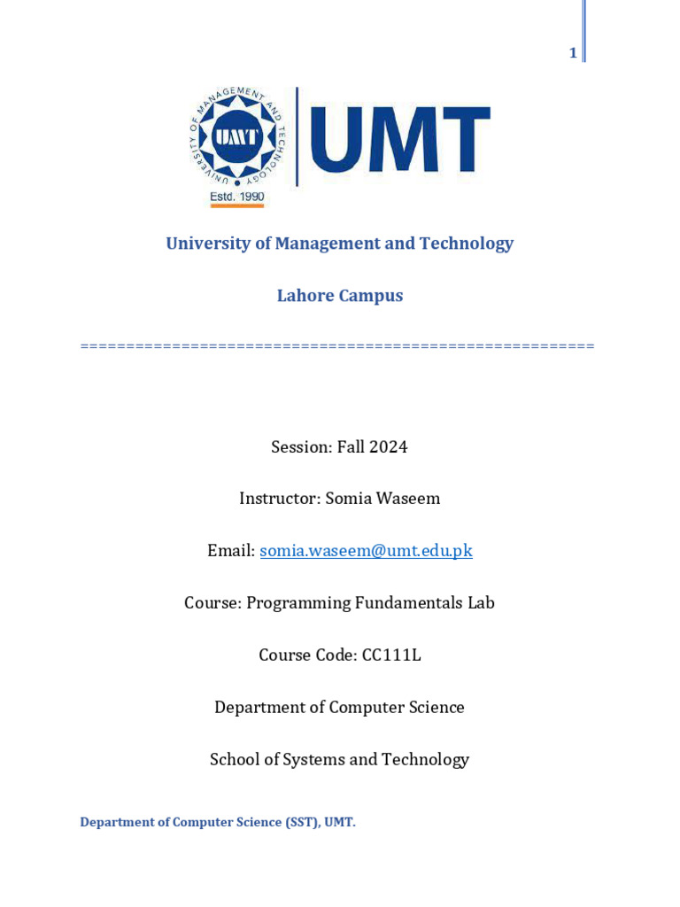 Department of Computer Science (SST), UMT.
