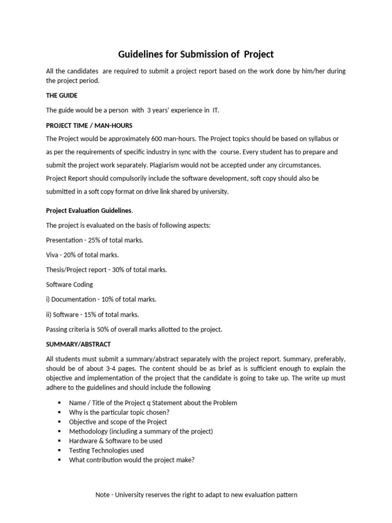 Soft copy of the project on CD/Floppy to be submitted with Hard Bound Project Report