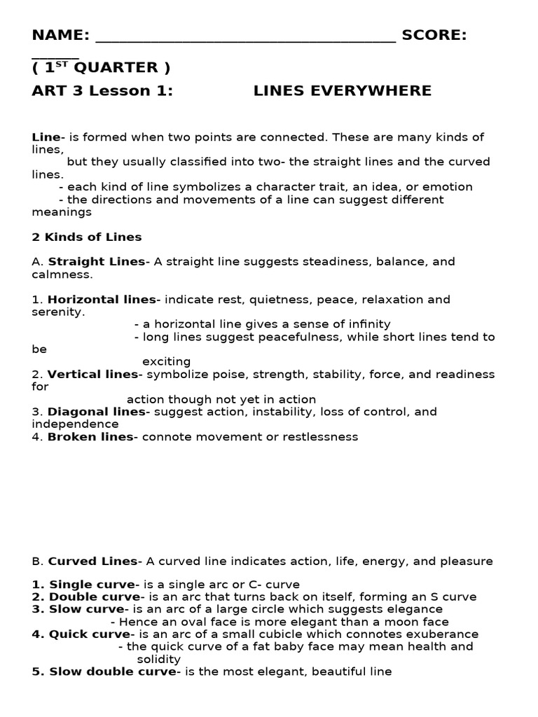 ART 3 Lesson 3: MORE ON LINES AND SHAPES