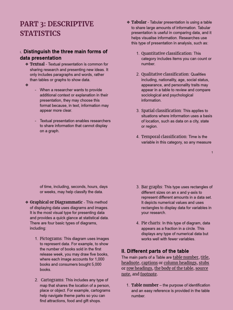 PART 3: DESCRIPTIVE ❖ Tabular - Tabular presentation is using a table