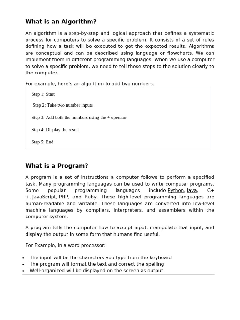 to solve a specific problem, we need to tell these steps to the solution clearly to