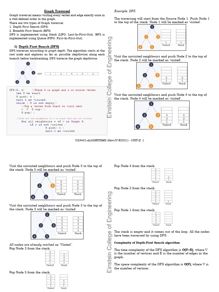 Pop Node 3 from the stack. The time complexity of the DFS algorithm is O(V+E), where V