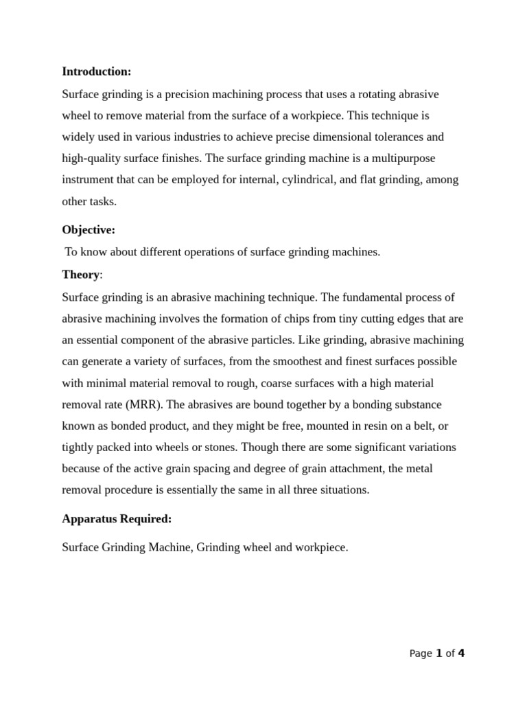involved in surface grinding. We were able to successfully perform surface