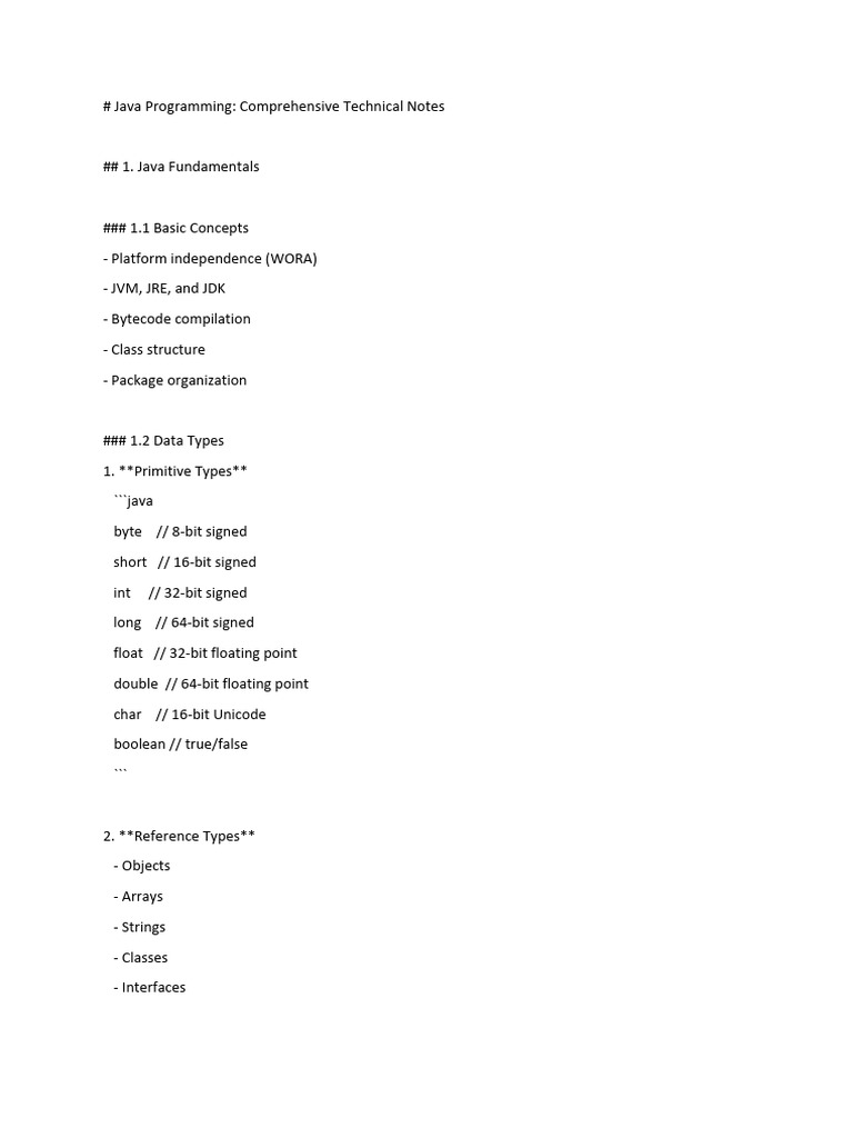 # Java Programming: Comprehensive Technical Notes