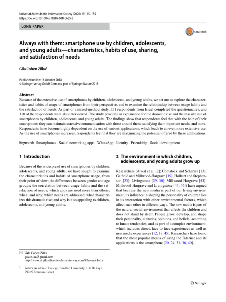 Аlways with them: smartphone use by children, adolescents, and young adults-characteristics, habits of use, sharing, and satisfaction of needs
