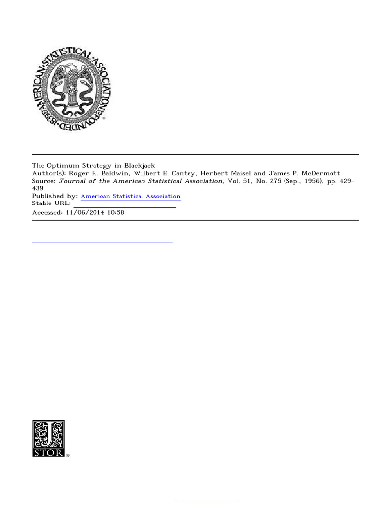 Source: Journal of the American Statistical Association, Vol. 51, No. 275 (Sep., 1956), pp. 429-