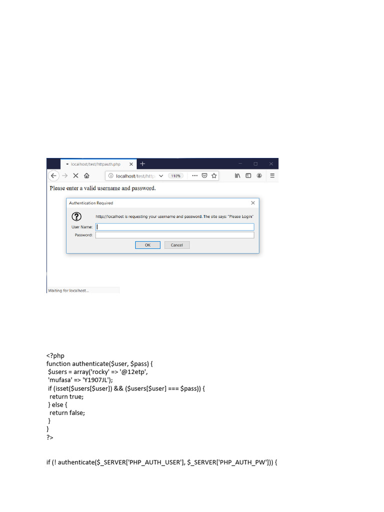 Here, we create a PHP function authenticate(), that contains two sets of username and