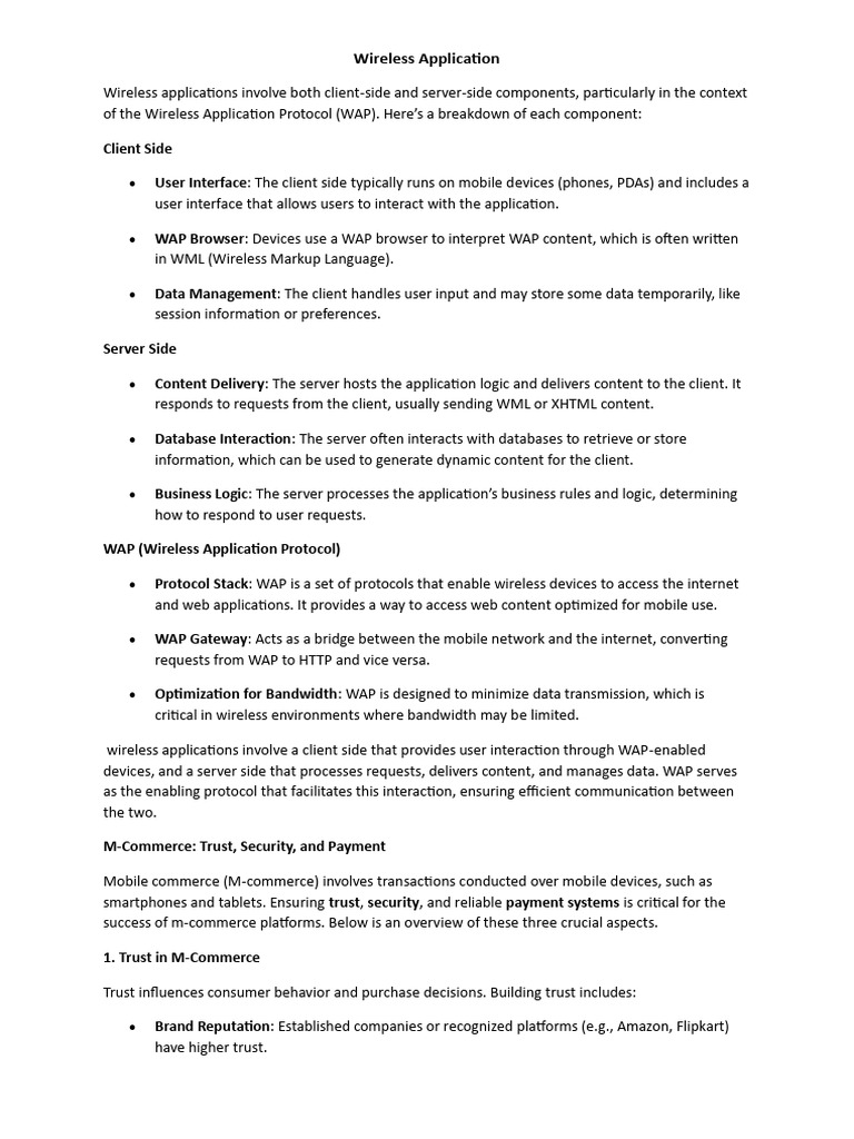 • Protocol Stack: WAP is a set of protocols that enable wireless devices to access the internet