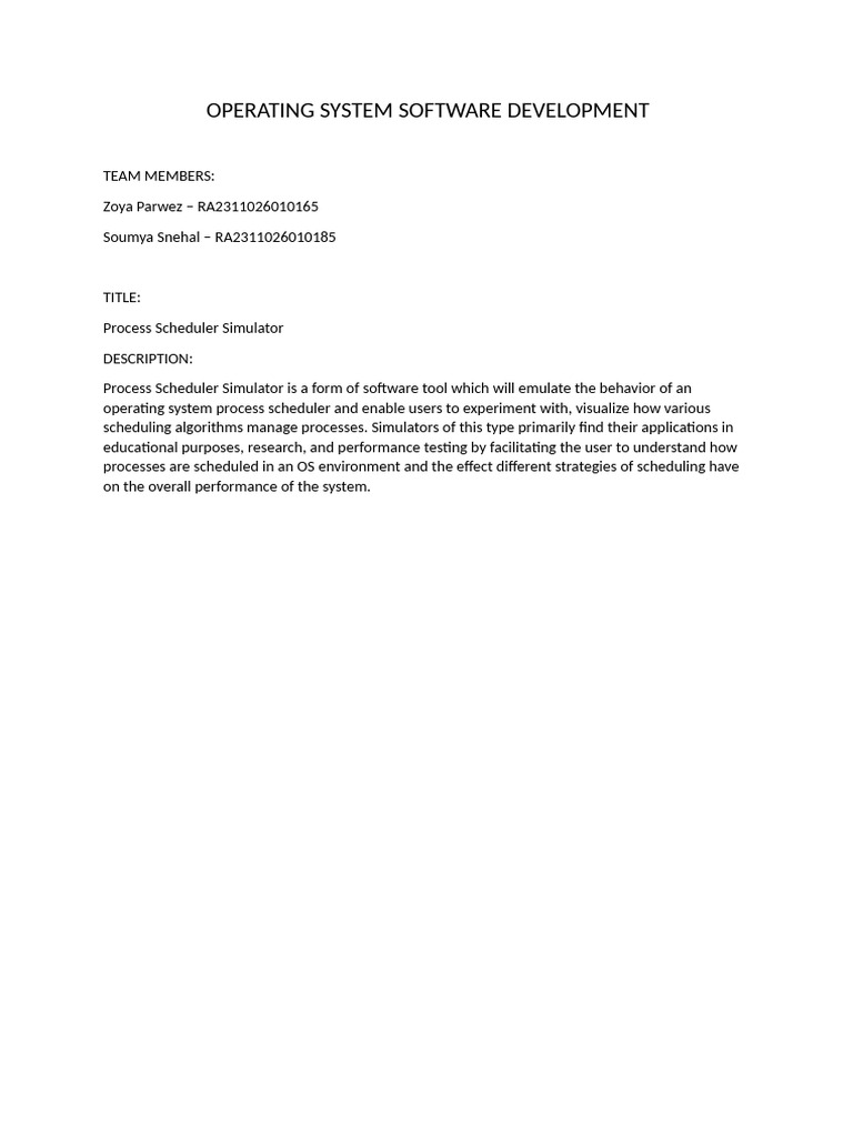Process Scheduler Simulator is a form of software tool which will emulate the behavior of an