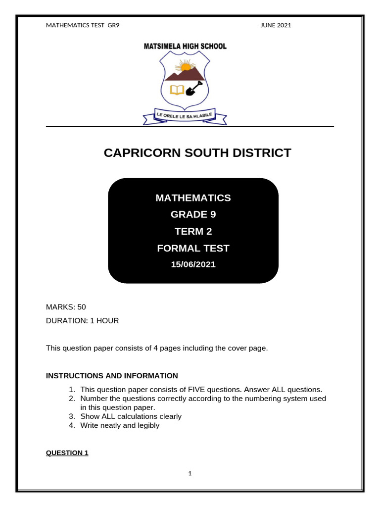 1. This question paper consists of FIVE questions. Answer ALL questions.