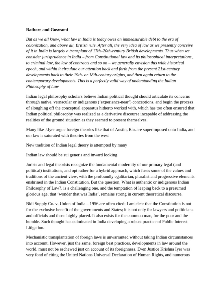 Many like J.Iyer argue foreign theories like that of Austin, Raz are superimposed onto India, and