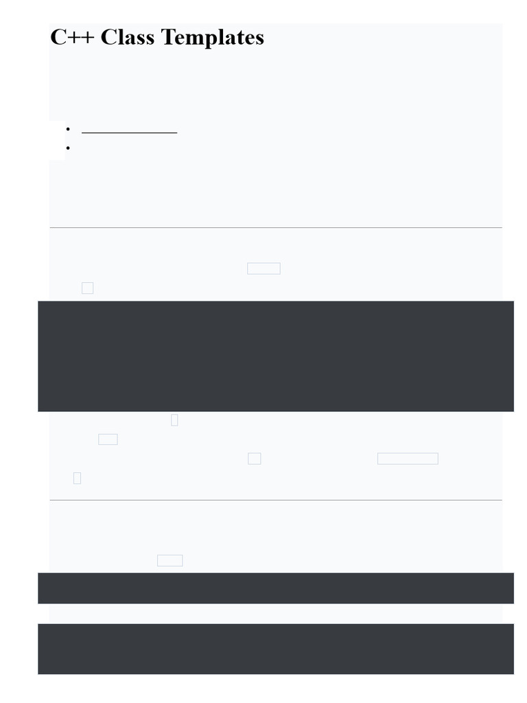 In this tutorial, we will learn about class templates in C++ with the help of examples.