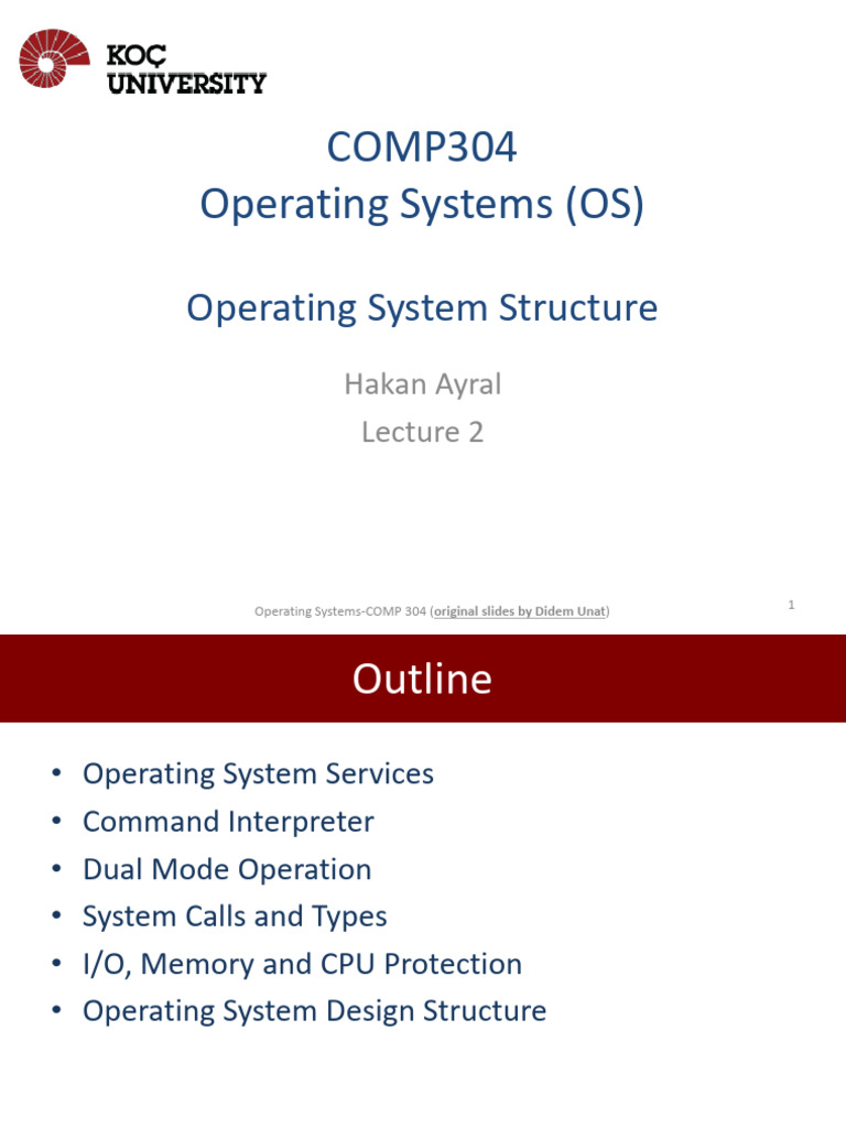 Operating Systems-COMP 304 (original slides by Didem Unat) 1