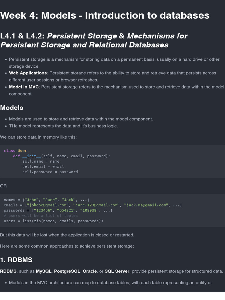 Week 4: Models - Introduction to databases