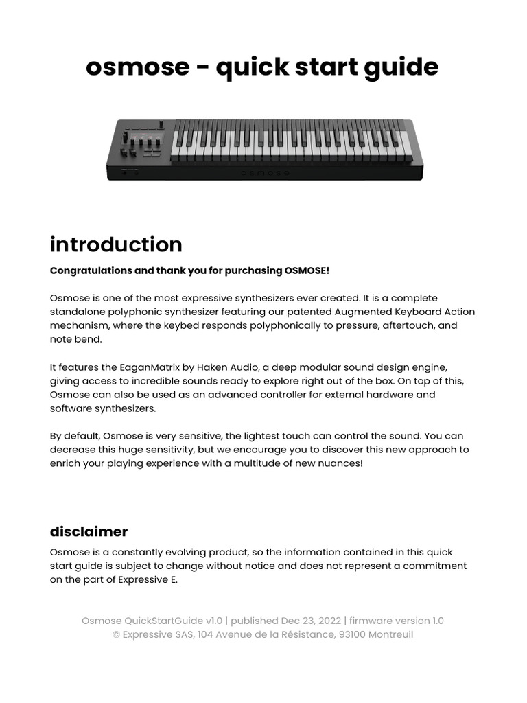 Osmose QuickStartGuide v1.0 | published Dec 23, 2022 | firmware version 1.0
