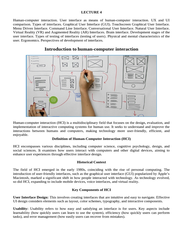 role of user interfaces in HCI, including key principles, characteristics, and their impact on user