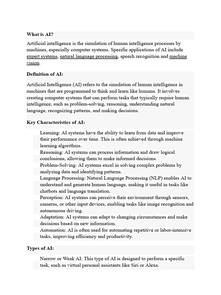 Artificial Intelligence (AI) refers to the simulation of human intelligence in